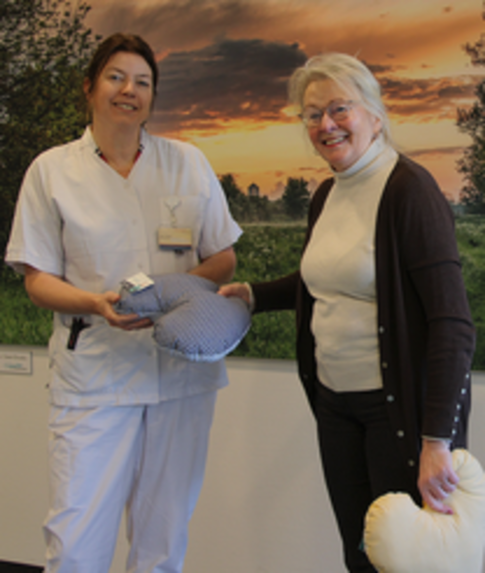 Heart Pillows zorgen dankzij de speciale inkeping, die precies onder de oksel past, voor minder druk op de plek van de operatie. De zachte, gelijkmatige tegendruk op de wond helpt bovendien zwelling en oedeem te verminderen. Dit waardevolle project wordt mede mogelijk gemaakt door de inzet van vrijwilligster Spoek Verstraaten. Zij zet zich al jaren met veel toewijding in voor het maken van deze kussentjes.